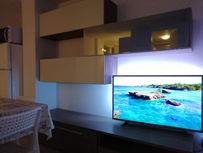 - Soggiorno con divano letto da 140 cm e smart TV led 50 pollici .