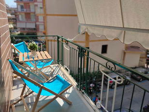 Con balcone di circa 5 mq con tavolino, 2 sedie da esterno e 2 sedie sdraio. Ampia tenda da sole.